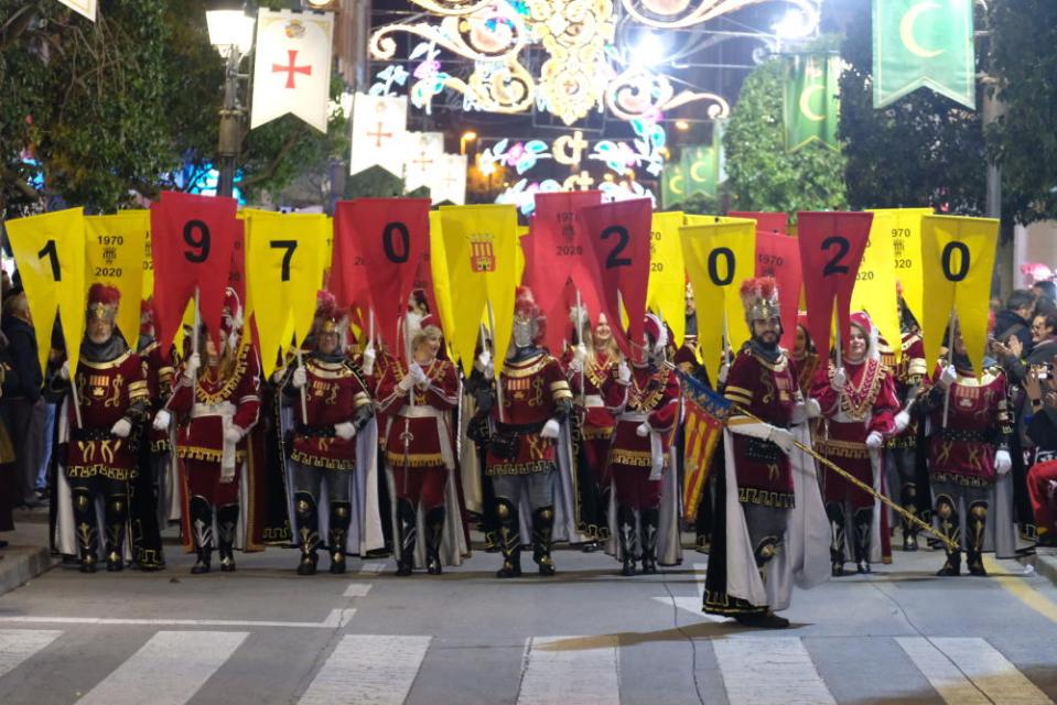 Cumplir 50 años merece ser celebrado y así lo estamos haciendo. Empezamos el 26 de diciembre de 2019, Día del Cabildo, representando el momento en el que se presentó la Comparsa de Alagoneses al pueblo de Sax en 1969. Continuamos con el Desfile de Capitanías el pasado 11 de enero. Y llegados a las Fiestas de San Blas, realizamos un Desfile especial el día 3 de febrero, formando un gran mosaico de estandartes que formaban la Señera de Jaime I, nuestra Bandera oficial, contando también con la participación la Comparsa de Almogávares de Villena y baturros del pueblo hermano de Alagón que no quisieron faltar a la cita. Todo salió según estaba planificado. Aunque los cinco días de Fiestas nos reservaban varias sorpresas en forma de muestras de cariño y homenajes. Y calor, mucho calor, humano y climatológico. Se han llevado a cabo las actividades programadas pero también nos hemos encontrado con muchas sorpresas en forma de cariño y hermandad festera, por parte de Ayuntamientos de Sax y Alagón, Peña Sajeño Alagonesa y Comparsas Sajeñas. Gracias, gracias, gracias.