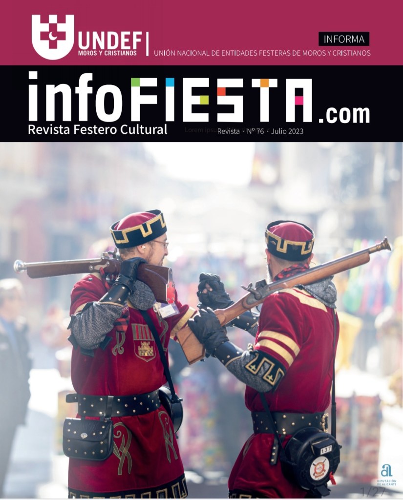 La revista InfoFiesta número 76, publicada el pasado mes de julio por la UNDEF, ha recogido en su portada una bonita estampa festera en la que dos alagoneses se felicitan estrechando sus manos al finalizar la procesión de la Candelaria.