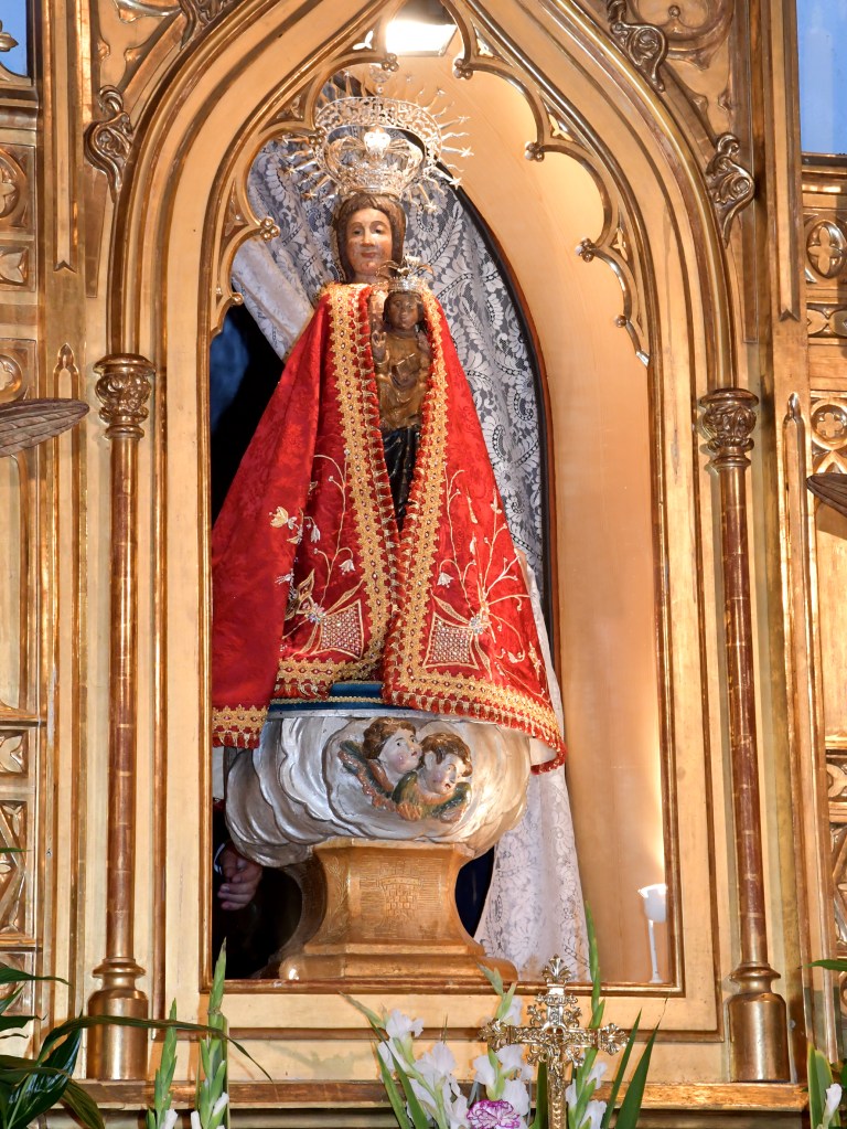 Con la Virgen del Castillo vestida con el manto que le obsequiamos al nombrarla Capitana perpetua de la Comparsa de Alagoneses, casi cincuenta alagoneses y alagonesas nos hicimos la foto de familia que encabeza este artículo. Gran final para un gran día.