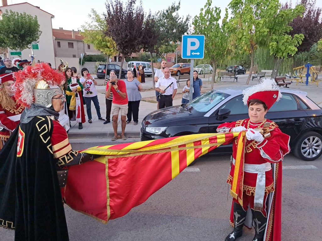 Previo a ello, en la calle Comparsa de Alagoneses se procederá a imponer el corbatín a la bandera que nos regaló el Ayuntamiento de Alagón con motivo de nuestro 50 aniversario. Los padrinos serán la alagonesa Silvia Serrano y nuestro presidente Simón Díaz.