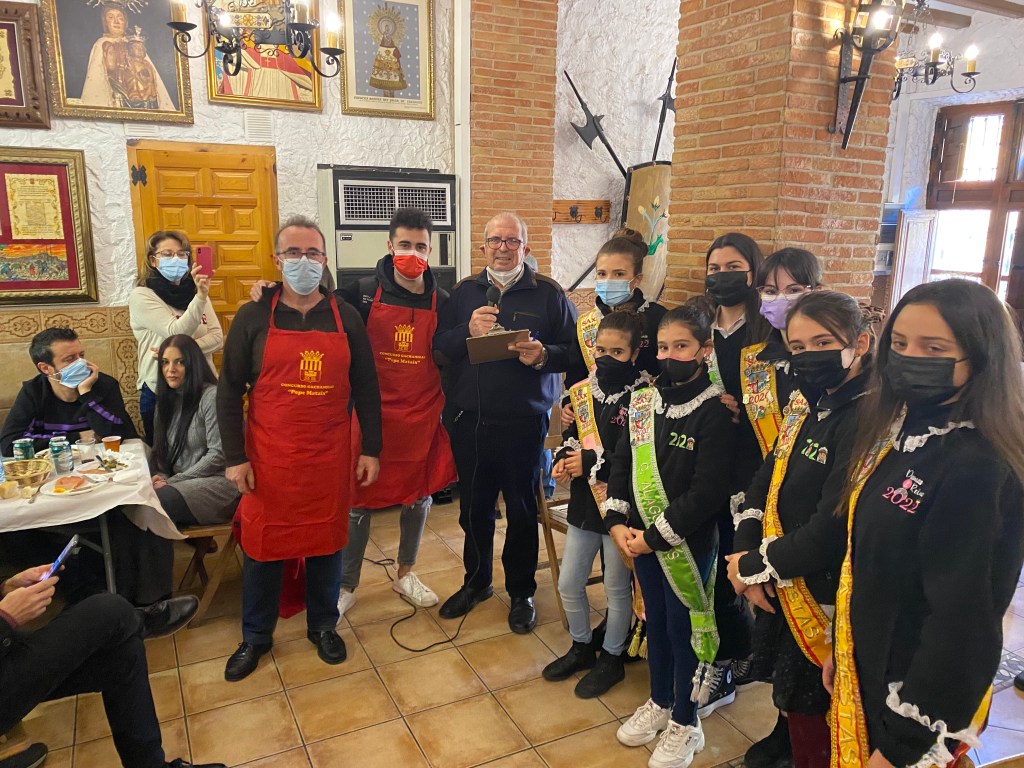 Entre los asistentes al acto, que disfrutaron de las ocho gachamigas realizadas junto con el tradicional moje murciano y los embutidos correspondientes, cabe destacar la presencia del presidente de la Mayordomía de San Blas, Embajadores (que este año se animaron a hacer una gachamiga), Reinas y Damas de honor.